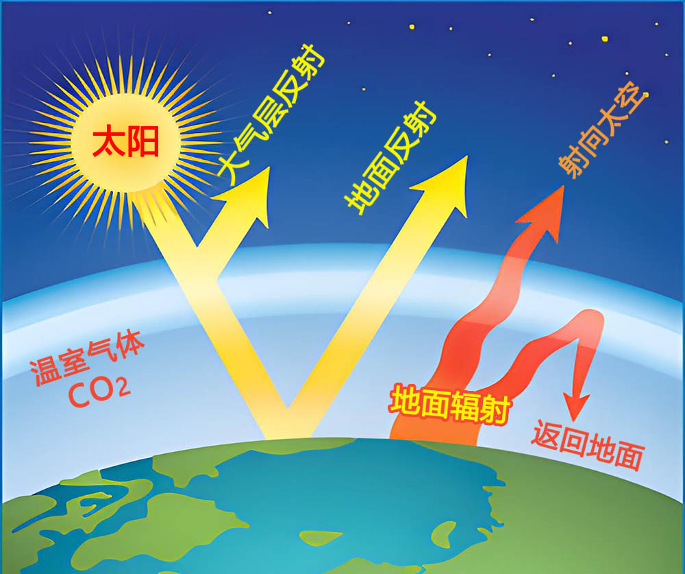 但是,如果温室气体浓度增加,散发出去的热量减少,地球温度就会上升。自从人类进入工业革命以后,大量的化石能源(煤与石油)开始源源不断地从地底开发出来,在地面上被利用和消耗,大量热量释放到环境中。与此同时,在化石能源消耗过程中,大量二氧化碳被释放到空气中,原本可以释放出去的热量被温室气体“截流”了,地球就像盖了一层厚厚的棉被。这种温室气体使地球变得更温暖的影响称为“温室效应”。目前排放二氧化碳最多的是燃煤发电厂、汽车尾气、重工业与化工企业。 |